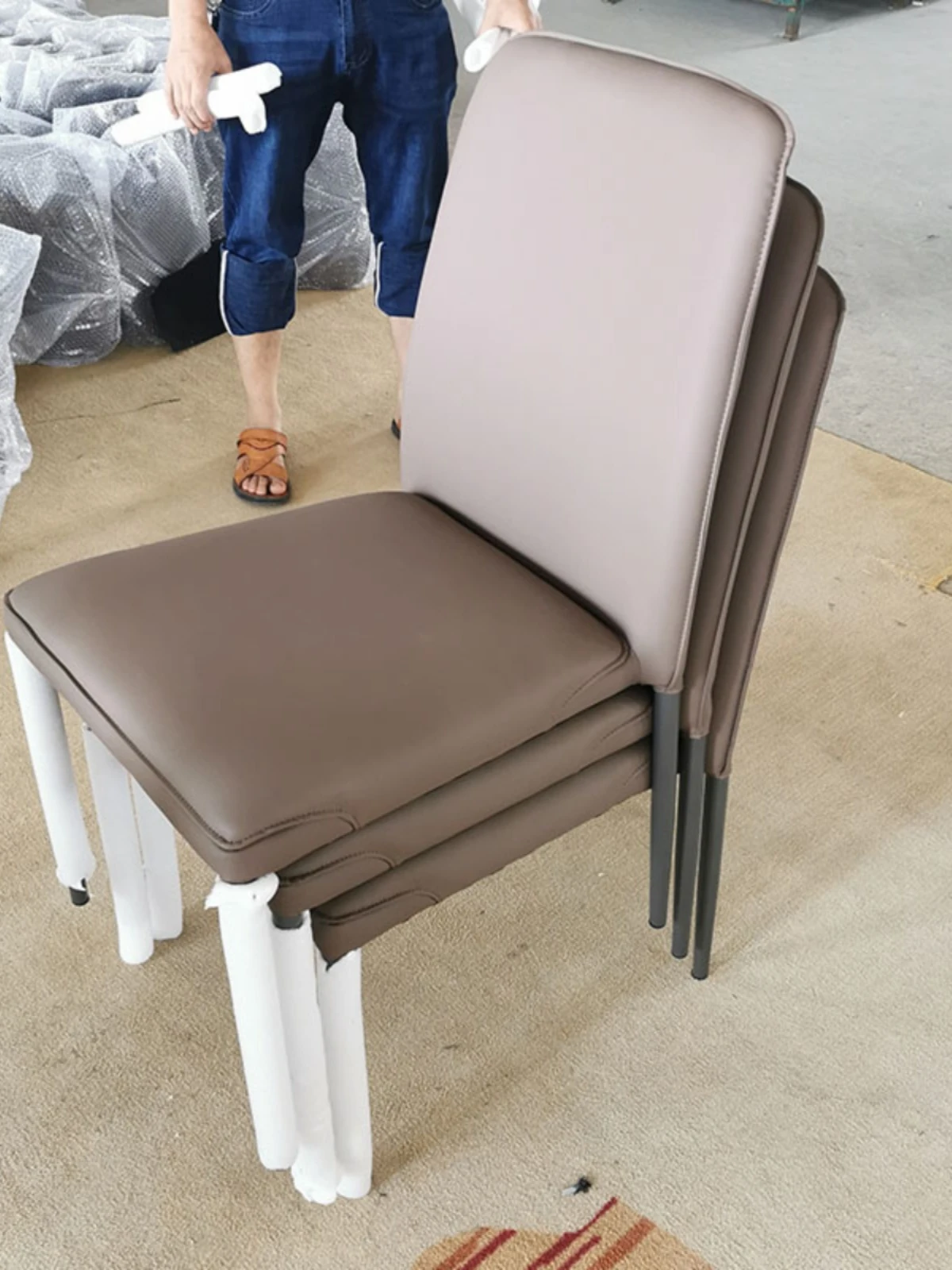 スタッキング可能なイタリアンミニマリストデザインの高級感あふれるダイニングチェア。モダンでシンプル、家庭用にも最適な超ファインレザー製の背もたれ付き。エレガントなレストランスタイルを実現!