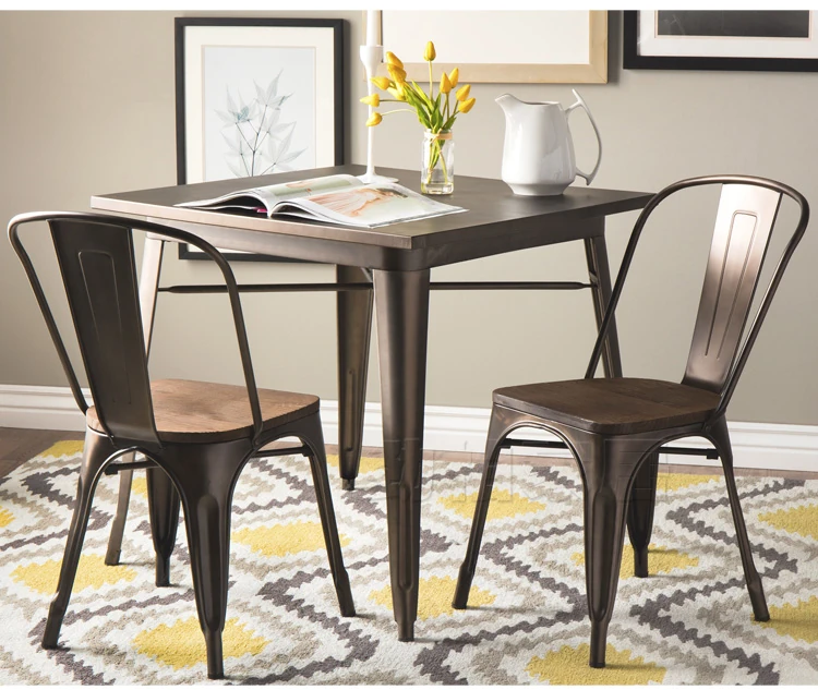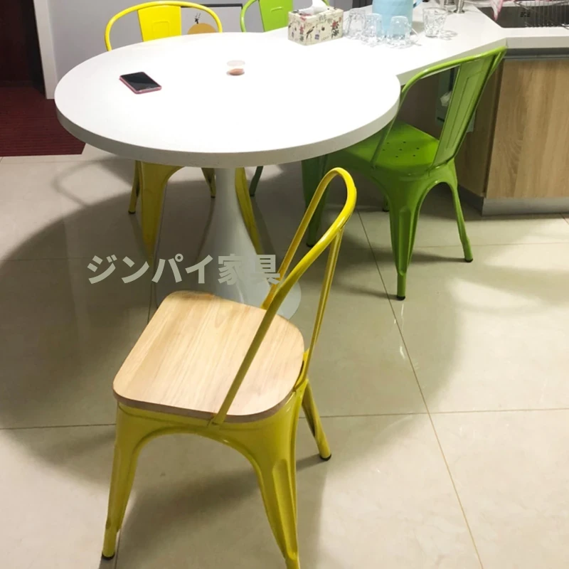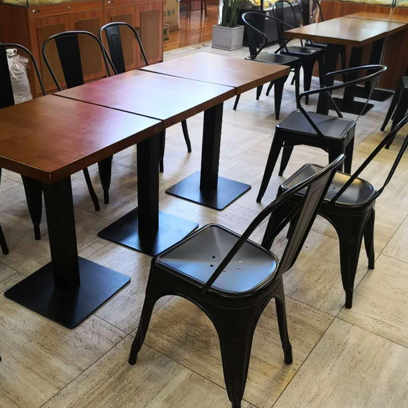 スタイリッシュなアイアン製ダイニングチェア&テーブルセット - シンプルでモダンなアウトドアリラックスチェア、金属製のインダストリアル風ファストフードレストランチェア。おしゃれな空間を演出!