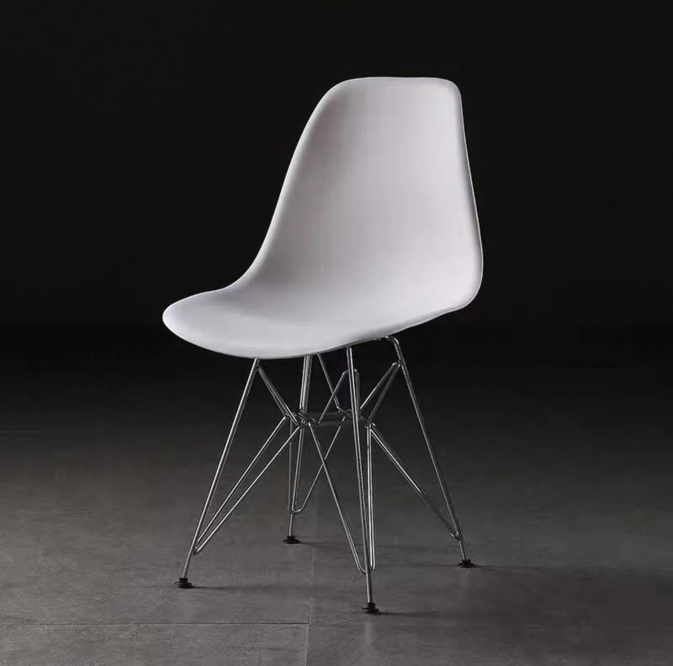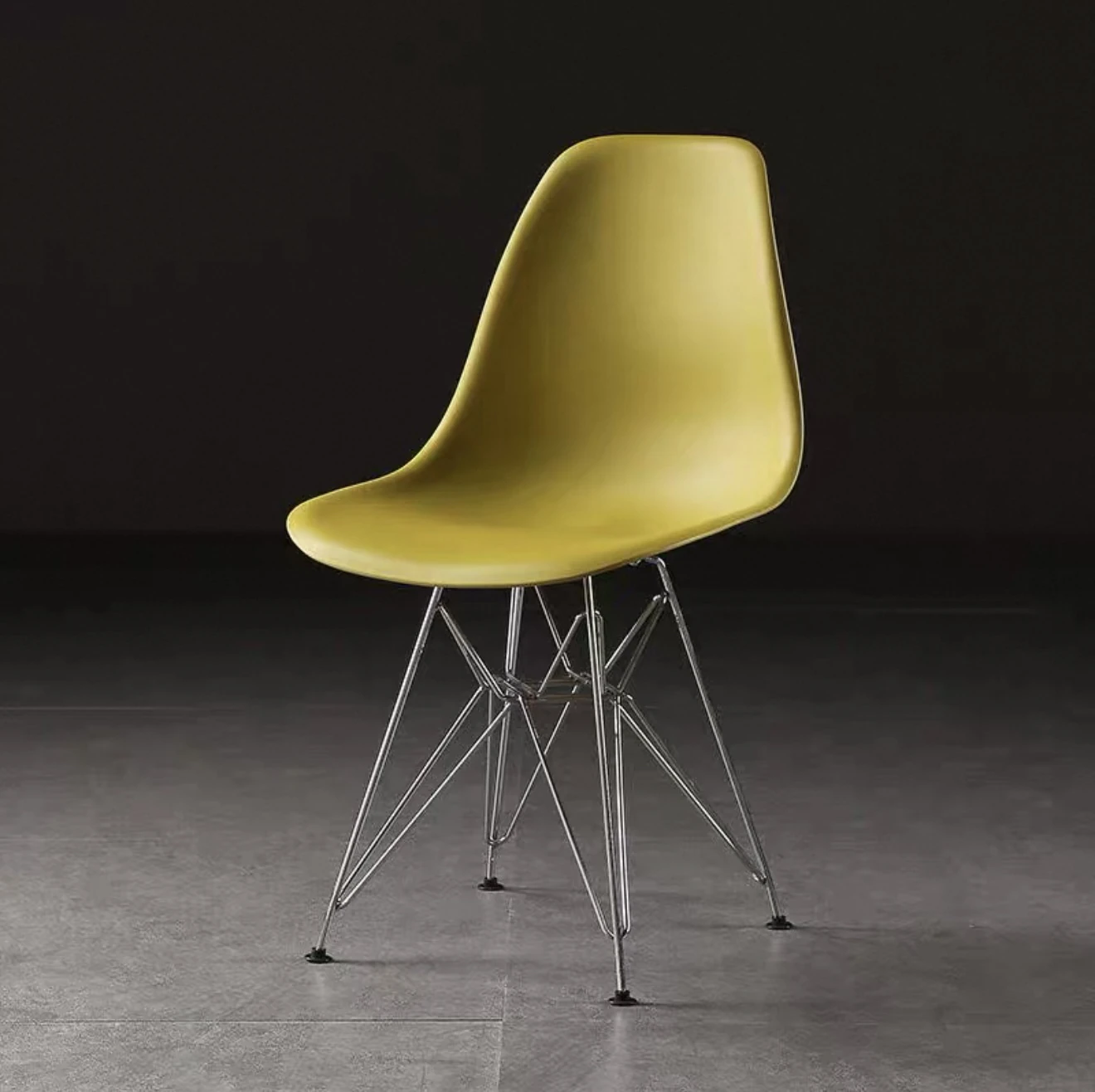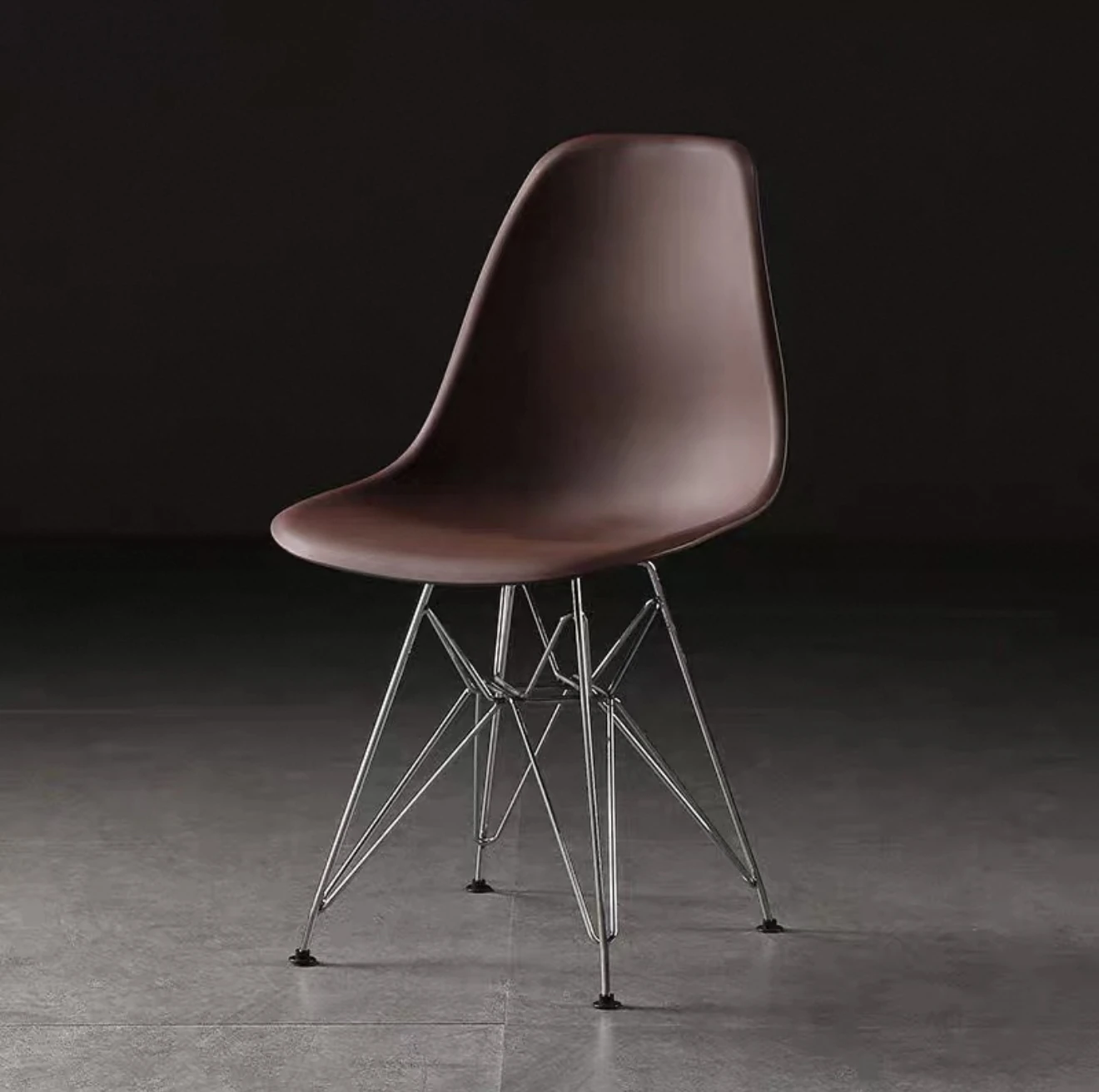 スタイリッシュなビジュアルデザインのイームズ風電気メッキ脚カフェチェア。クリエイティブなリラックス背もたれ付き、アームレストなしのオフィス用・カフェ用チェア。おしゃれで機能的、あなたの空間を引き立てます!