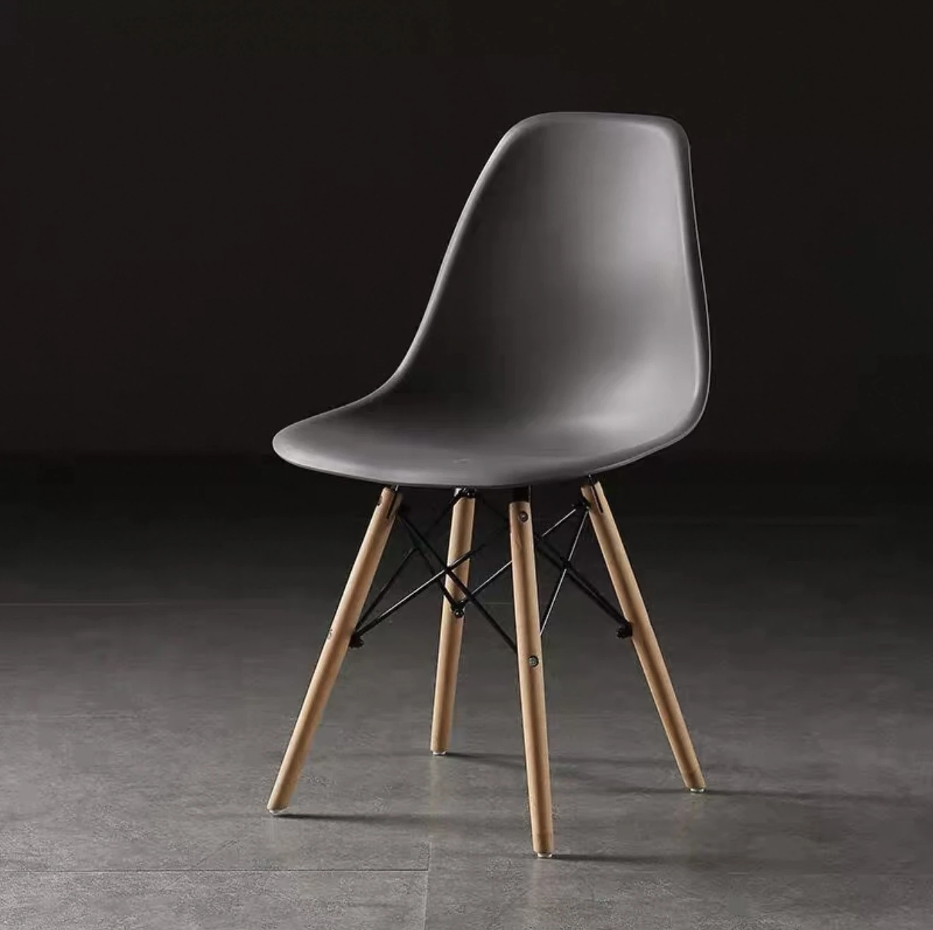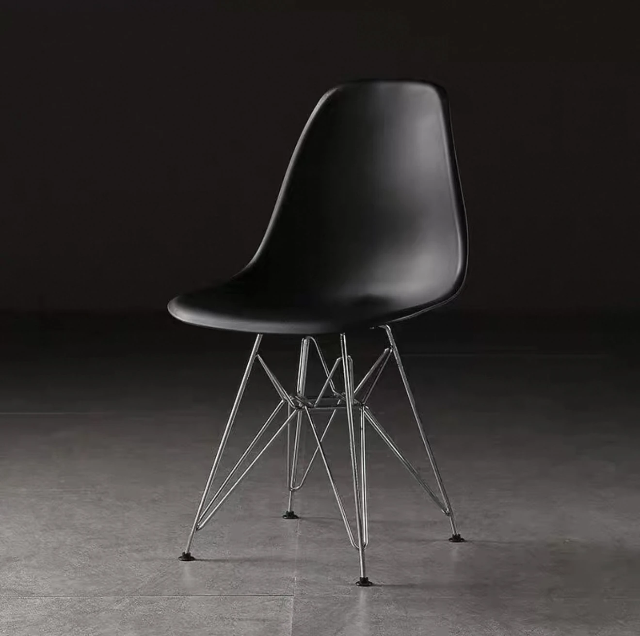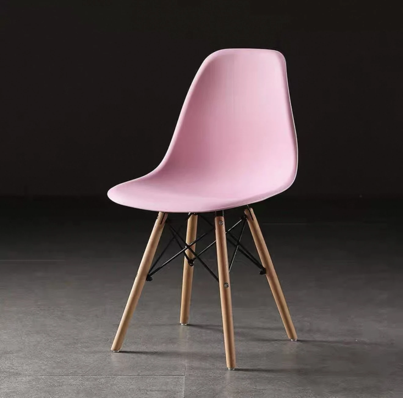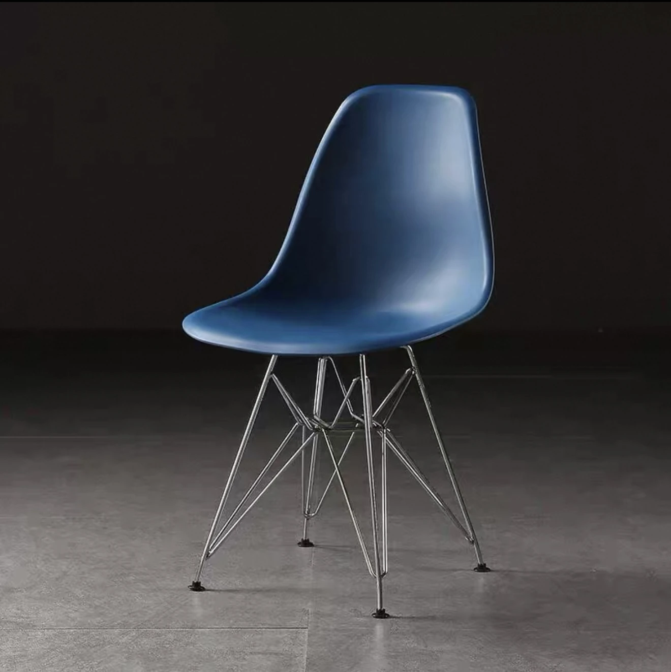 スタイリッシュなビジュアルデザインのイームズ風電気メッキ脚カフェチェア。クリエイティブなリラックス背もたれ付き、アームレストなしのオフィス用・カフェ用チェア。おしゃれで機能的、あなたの空間を引き立てます!