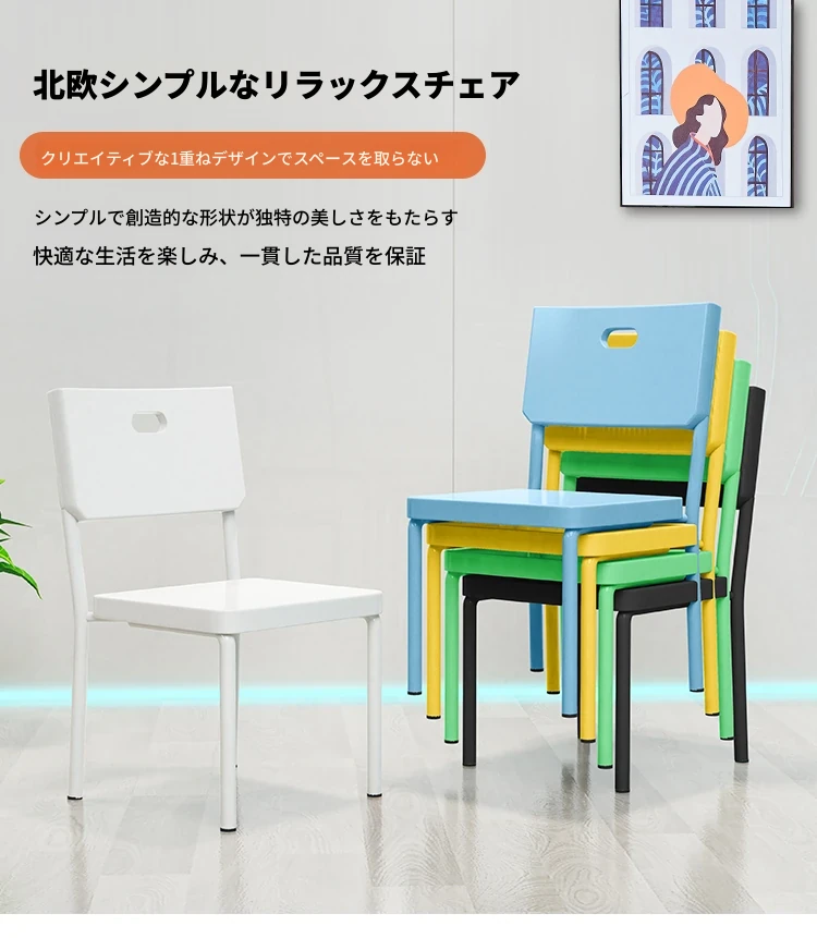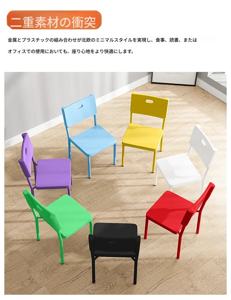 シンプルでスタイリッシュなプラスチック製椅子|家庭用・ダイニング・オフィス・学生向け|快適な背もたれ付き|ダンスや待機にも最適な多用途チェア
