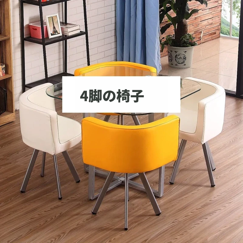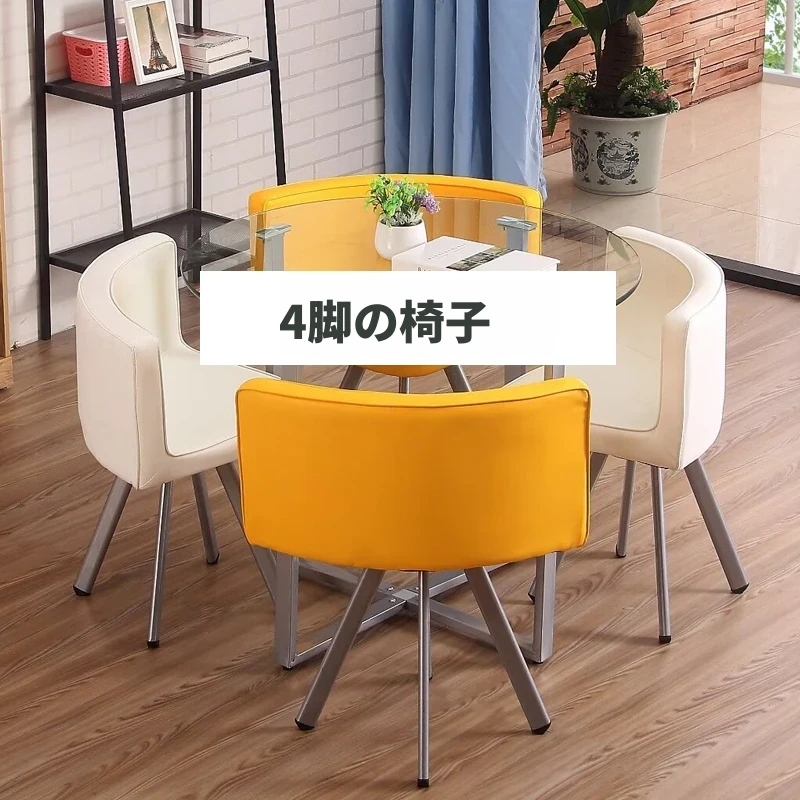 2つの黄色の椅子 + 2つの白い椅子 + 銀色の脚