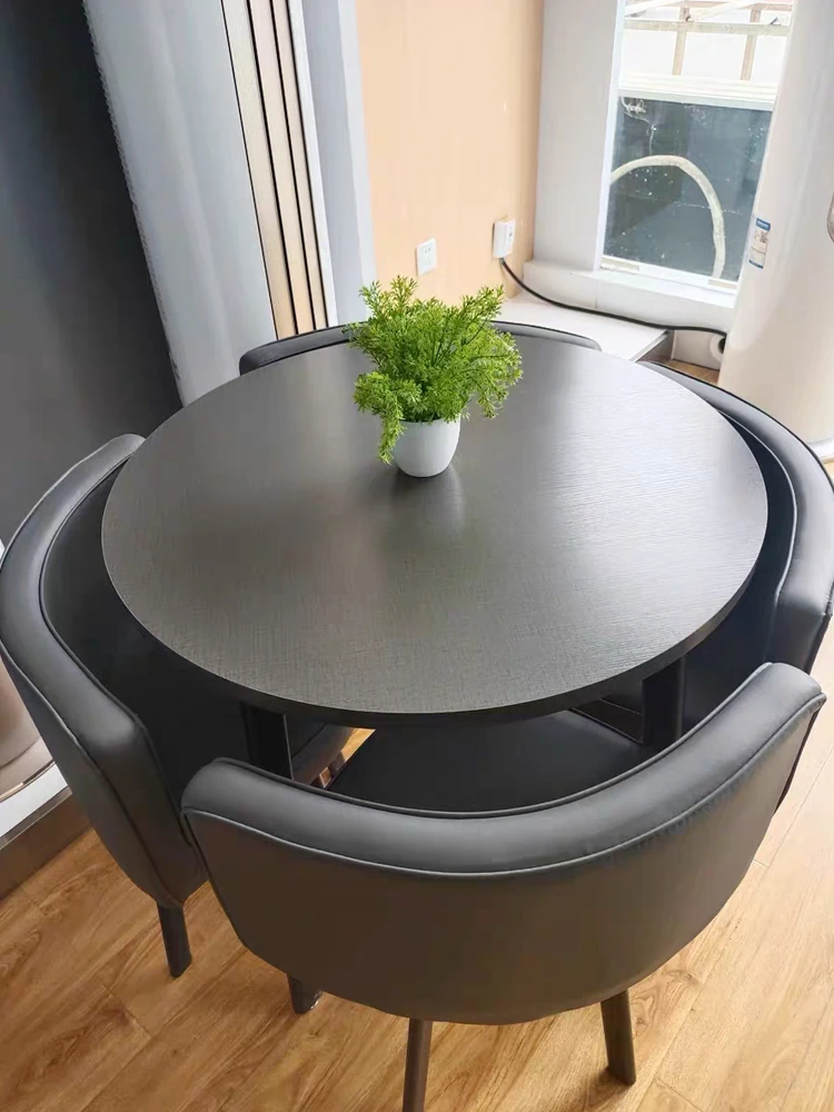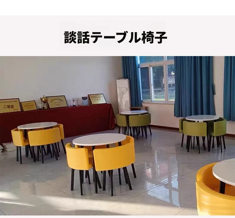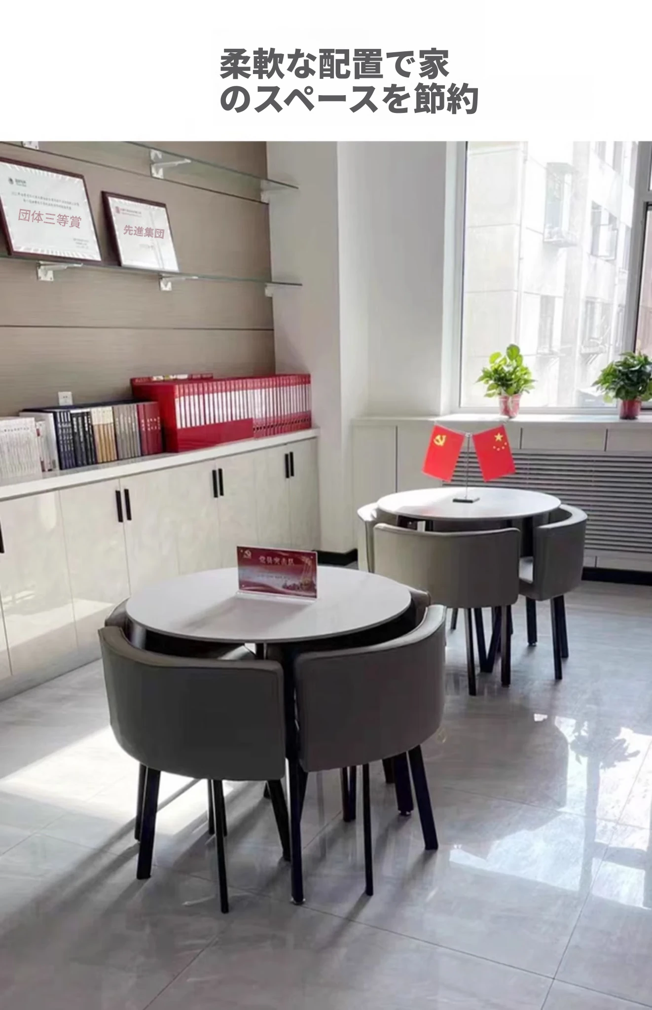 ビジネスオフィスや販売部門に最適!シンプルでスタイリッシュな単椅子とテーブルのセット。小型スペースにもぴったりなリラックスできるデザインで、接客や休憩に最適です。デザイン性と実用性を兼ね備えたアイテム!
