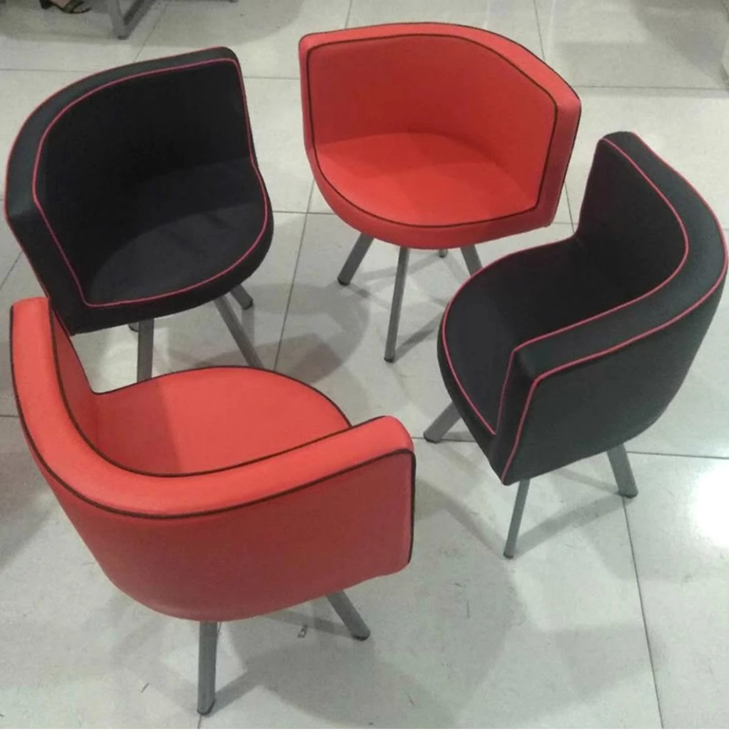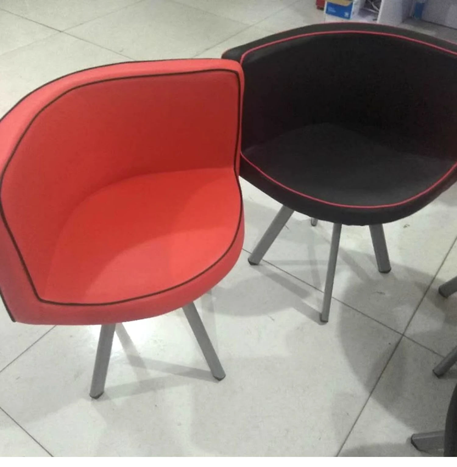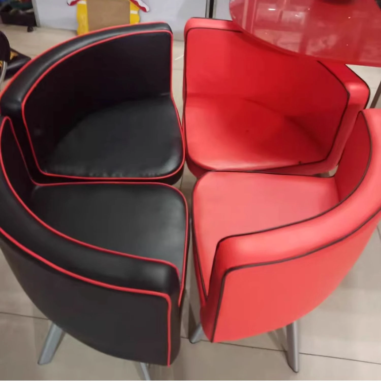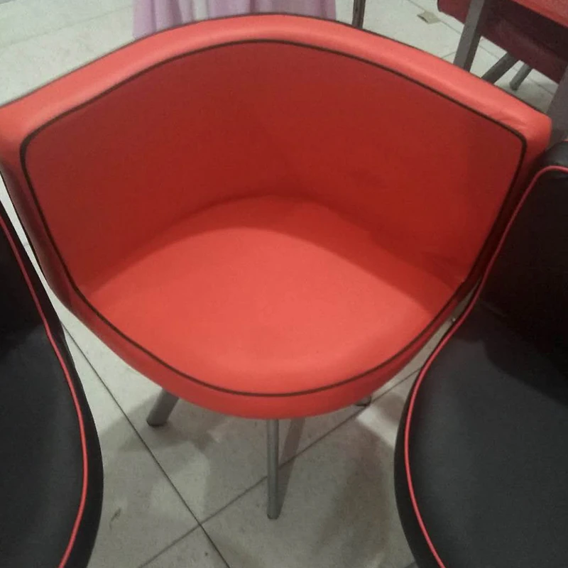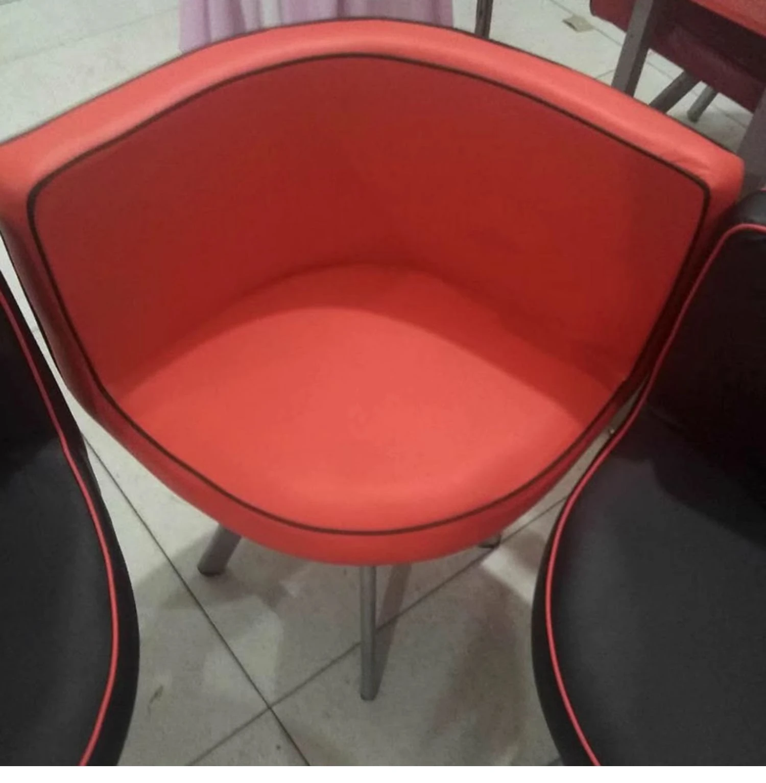 803モデル:赤と白のツートンカラーの皮製椅子+シルバーのフレーム