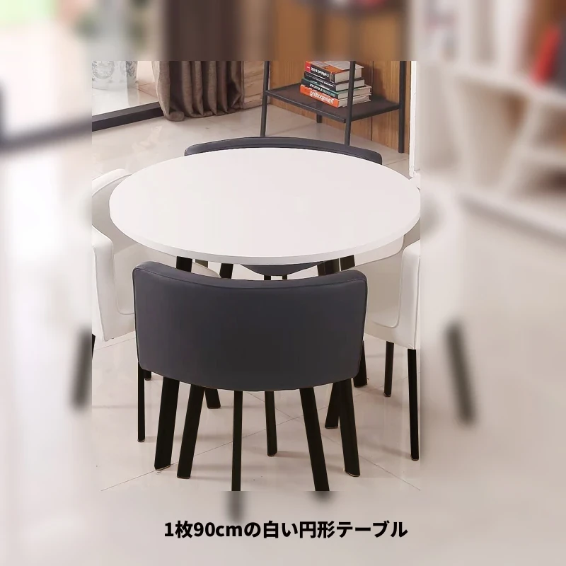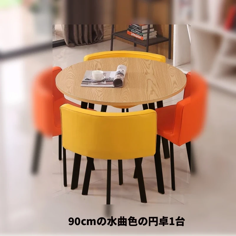 4オレンジと白の椅子 + 90センチの丸テーブル
