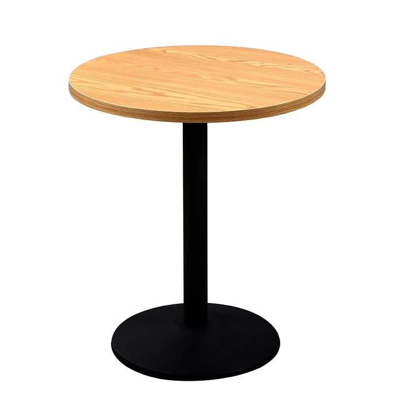直径60cmの木製板、ナチュラルウッドカラー + シングルポールのブラックファブリック脚
