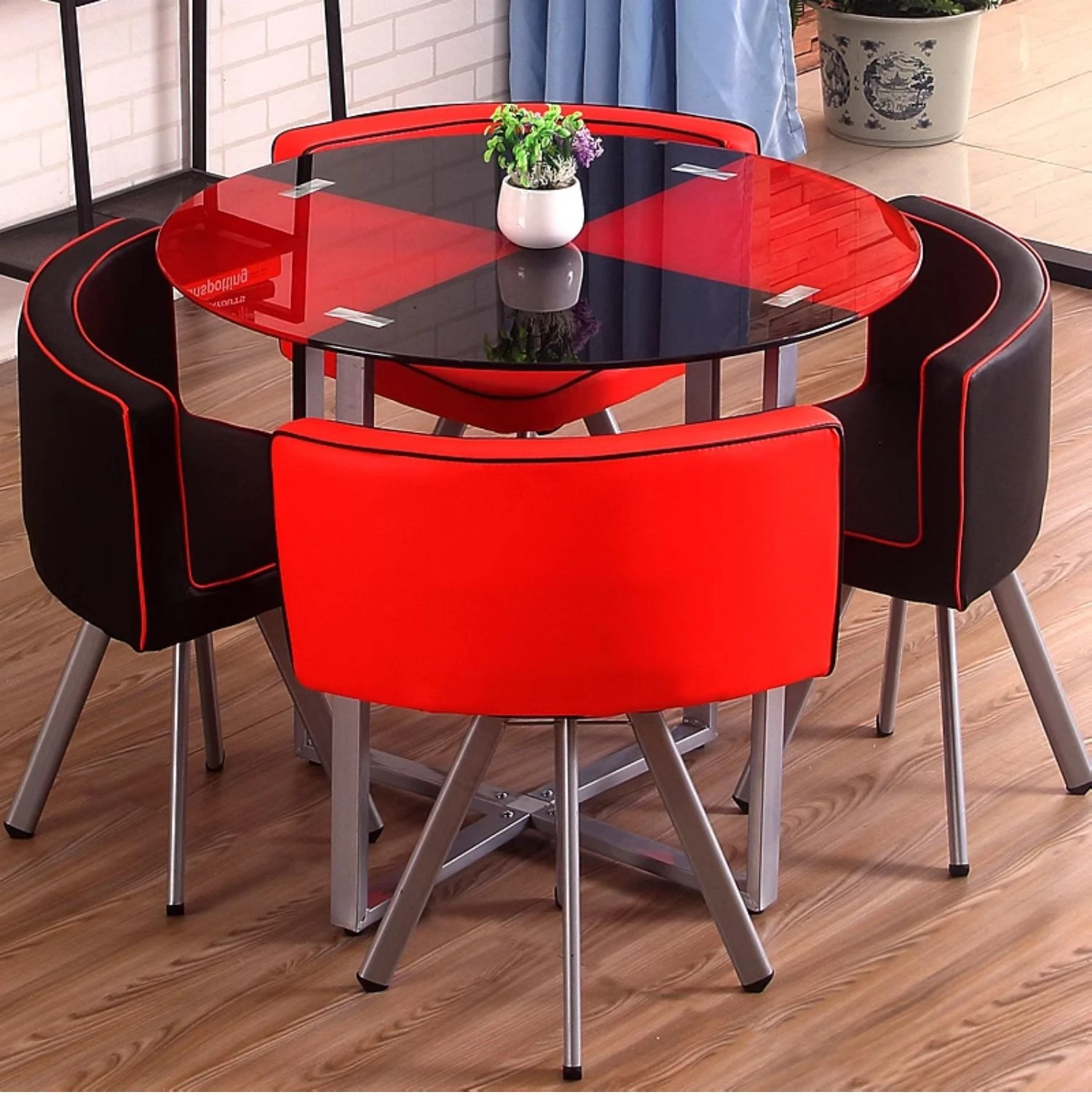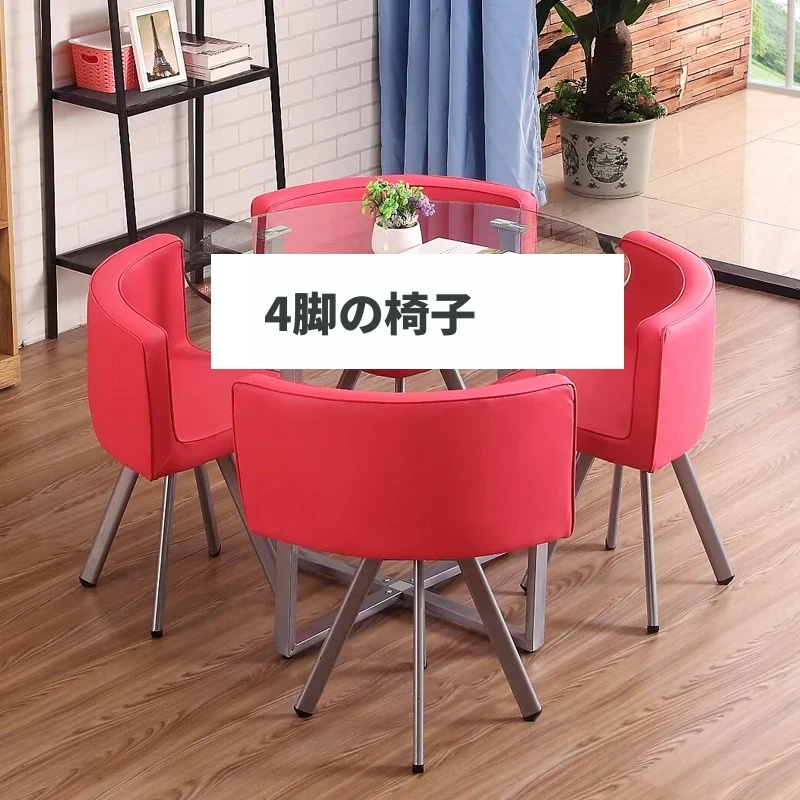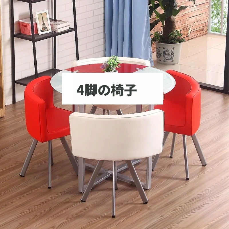 6脚の椅子:2脚の赤い皮、2脚の黒い皮、2脚の中央位置(他の色は備考に記載してください)