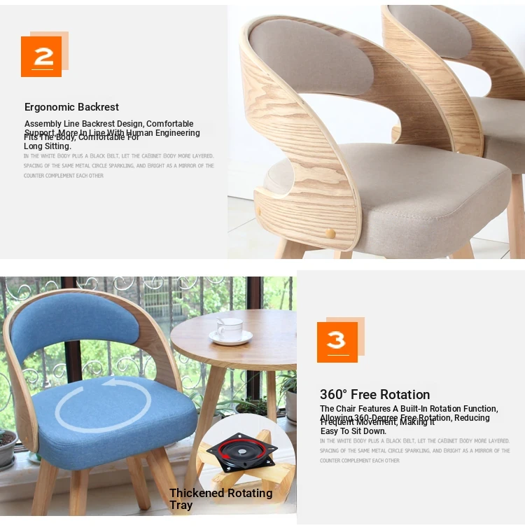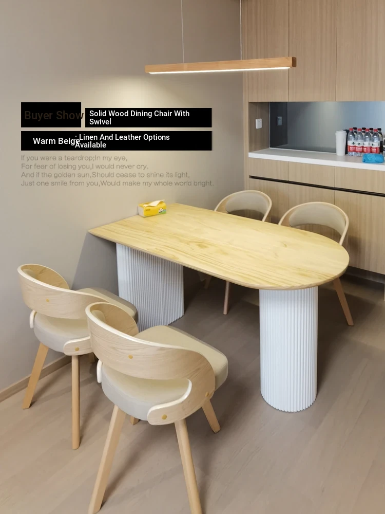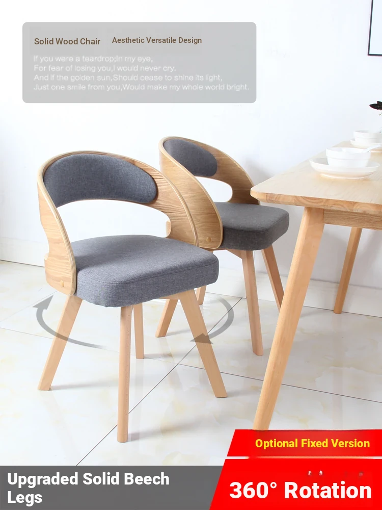 Stylish Solid Wood Dining Chair for Home & Café - Minimalist Desk & Chair Set, Swivel Backrest for Tea Shops, Comfortable Balcony Lounge Chair