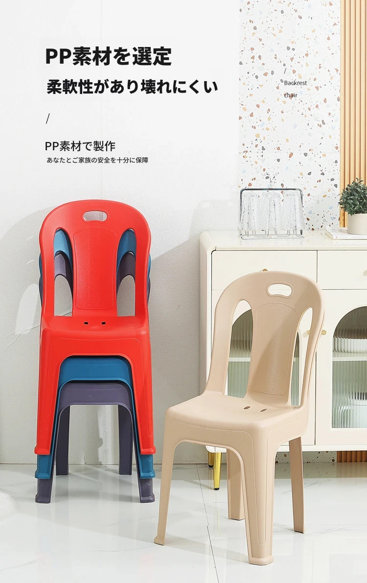 シンプルでスタイリッシュなプラスチック製背もたれ椅子|リビングやダイニングに最適|お子様の学習や食事に便利|スタッキング可能で省スペース|滑り止め付きで安全性抜群!