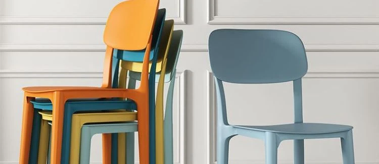 厚手で丈夫な積み重ね可能なプラスチック製ダイニングチェア - 北欧スタイルのレストランや家庭に最適な背もたれ付きチェア。おしゃれで機能的なデザインで、快適な食事の時間を提供します!