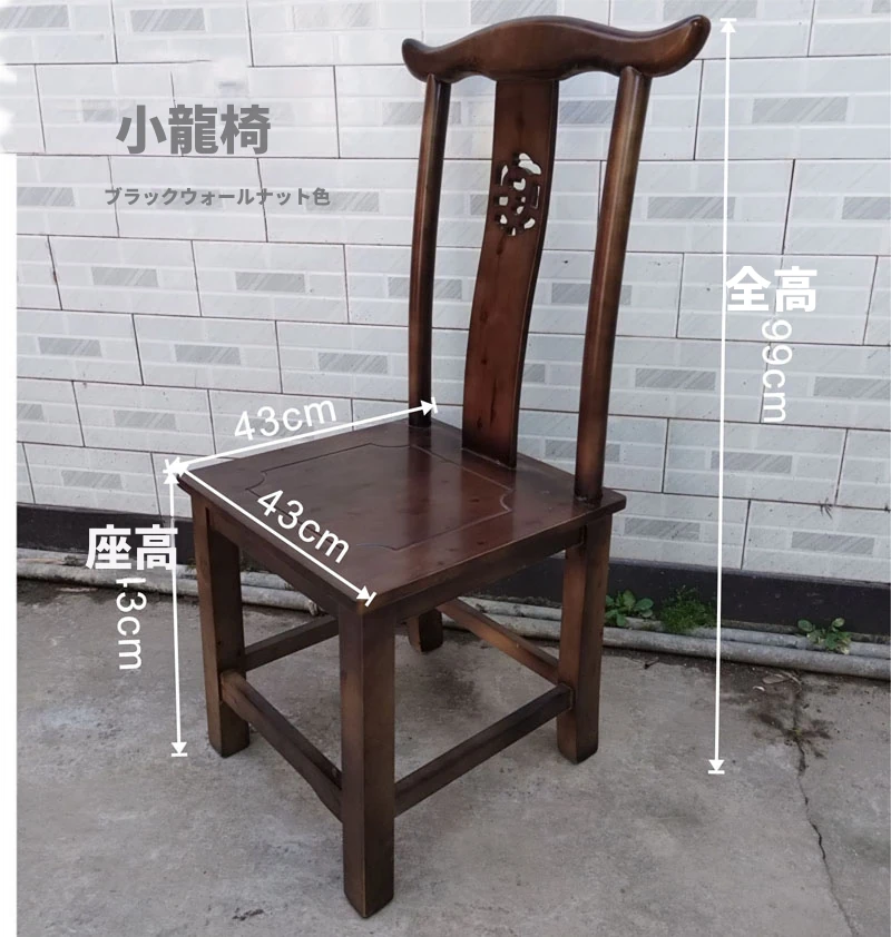 小龍椅ブラックウォールナット色 座高43 総高99cm